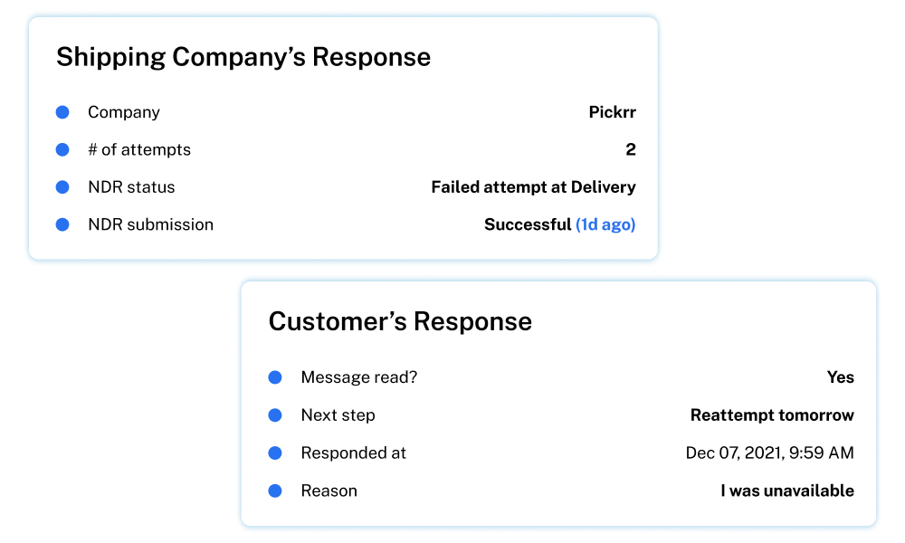 Reattempt details collected from the customers are populated in Pragma, and in the dashboards of the Store, WMS and courier partners